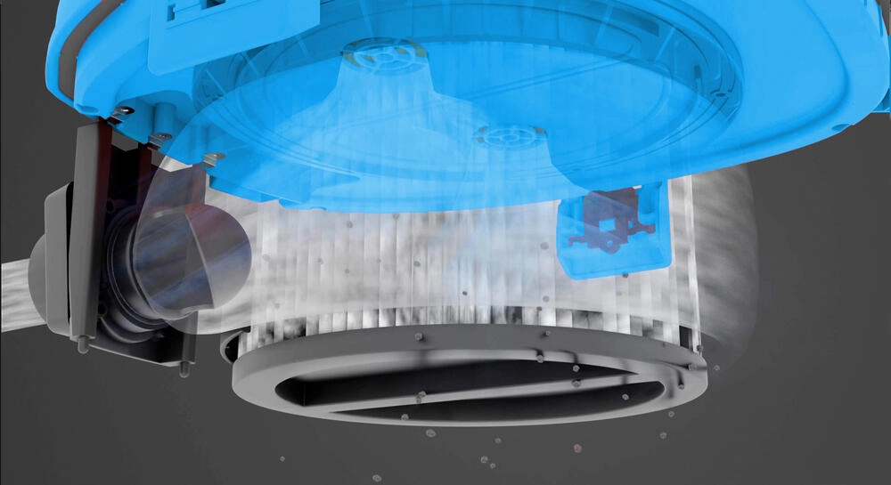 Décolmatage automatique du filtre en continu avec une puissance d'aspiration élevée et constante, même en présence de quantités extrêmes de poussières fines grâce aux deux chambres de filtration indépendantes qui sont nettoyées l‘une après l‘autre