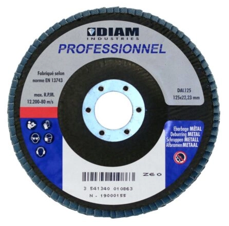 Disque abrasif métal DAL Ø 125 ; grain 60 DIAM INDUSTRIES pour tronçonnage métal
