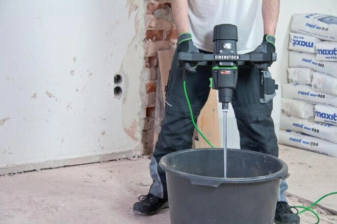 Mélange de matériaux très visqueux jusqu'à 80 kg : mortier et enduit prêt à l'emploi, ciment, chaux, béton, résine d'époxy chargée en quartz, chape, matériaux d'étanchéité, plâtre, granulés.Nombre de vitesses