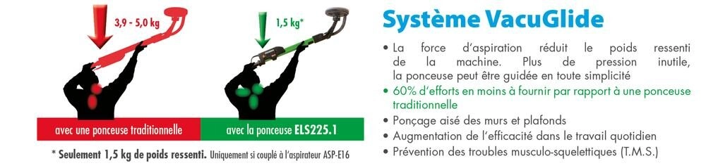 Ponceuse longue portée ELS225.1 DIAM INDUSTRIES Ø 225 mm pour ponçage murs, plafonds, panneaux d’isolation thermique ; 230 V ; 590 W
