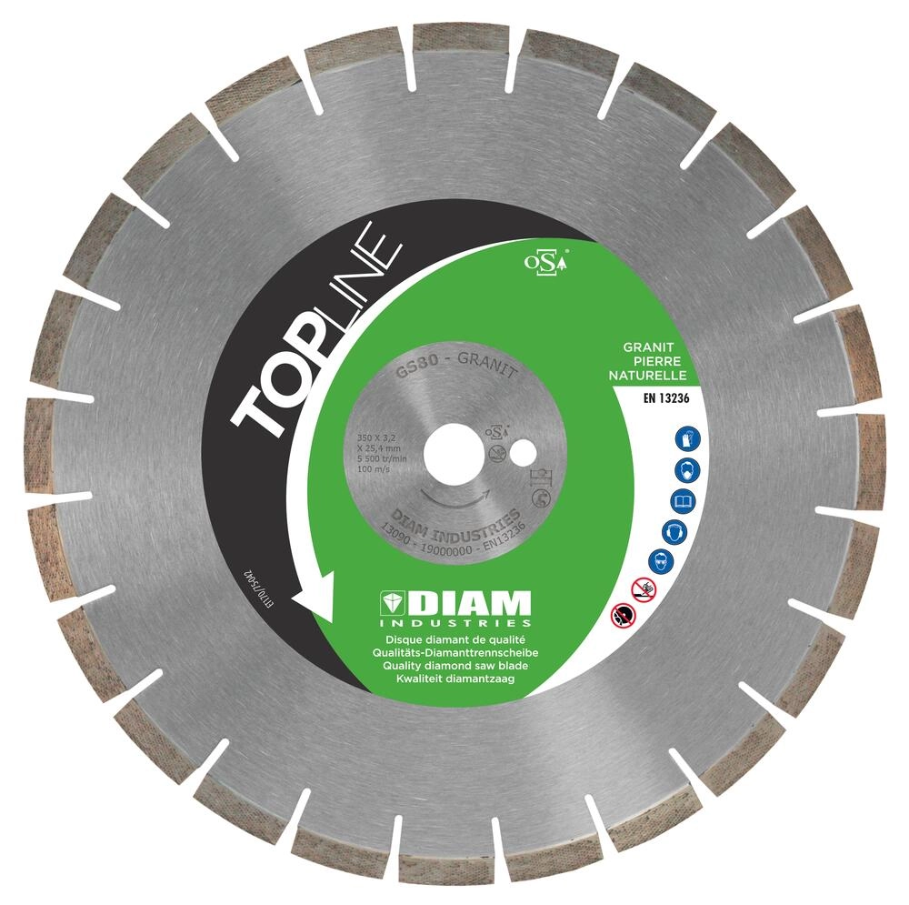 Disque diamant granit GS80 Ø 350 DIAM INDUSTRIES pour tronçonnage granit, matériaux durs