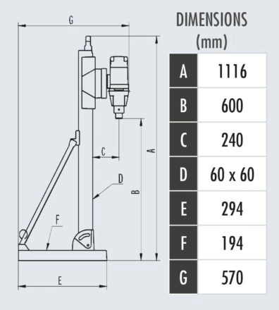 Carotteuse à eau PLE450B DIAM INDUSTRIES Ø 450 mm pour béton armé, pierre naturelle, asphalte ; 230 V ; 3 300 W ; 3 vitesses ; raccord 1″1/4