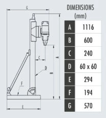Dimensions nettes (L x l x h) 570 x 194 x 1116