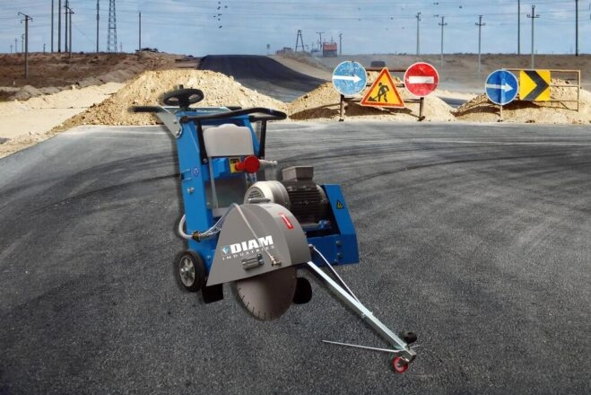 Scie à sol SC450-E4 DIAM INDUSTRIES Ø 500 mm pour asphalte, enrobé ; moteur électrique 400 V ; 4 000 W ; profondeur de coupe maxi 190 mm