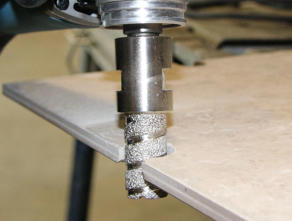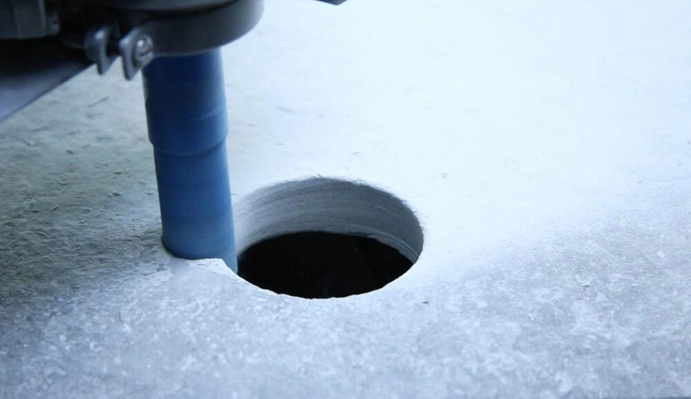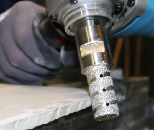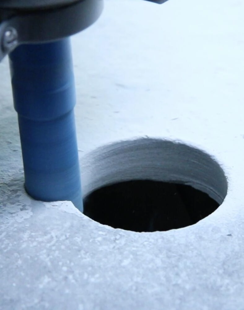 Perforations permettant l'utilisation avec arrosage sur perceuse à colonne à eau