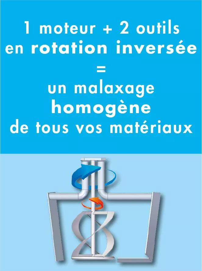 Mélange homogène et sans grumeaux de matériaux de différentes viscosités : mortier, plâtre, ragréage, ciment à carrelage, joint, chape, mastic, joint de plaque d'isolation...